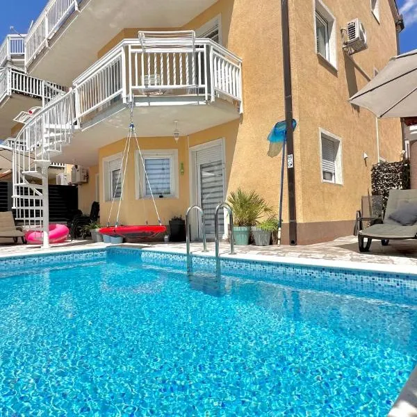 Holiday House Bella坐落于Gornje Vinovo,享有池景,配有客房、私人泳池和阳台。这家住宿距离萨罗纳考古公园有48公里,配备露台和免费私人停车位。 这家空调别墅配有2间独立卧室、起居室、带冰箱和洗碗机的设施齐全的厨房以及1间浴室。这家别墅还提供休息区、洗衣机以及1间带吹风机的浴室。 这家别墅距离青年公园体育场有48公里,距离Barone Fortress有49公里。