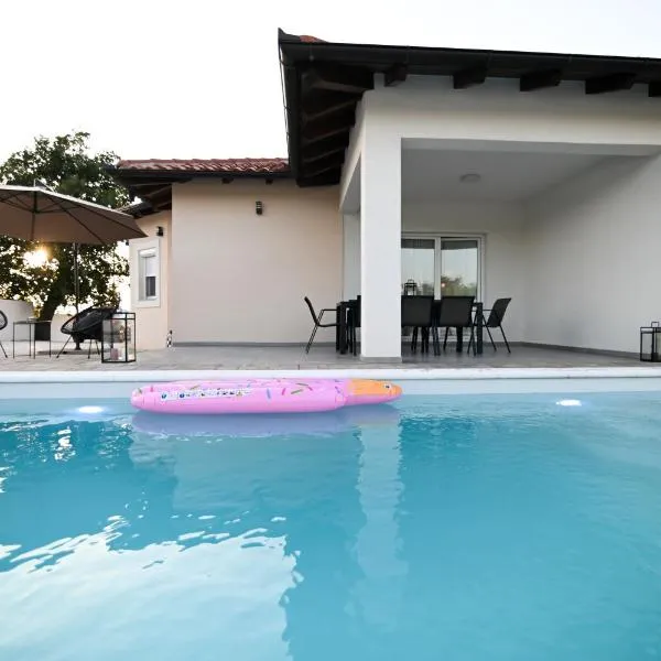 Family friendly house with a swimming pool Zemunik Donji, Zadar - 23611坐落于Kalapač,提供户外游泳池,距离比奥格勒遗产博物馆有31公里,距离Duke's Palace有11公里,距离扎达尔人民广场有11公里。这家空调住宿距离科纳提码头有29公里,为客人提供免费WiFi,内部提供私人停车位。