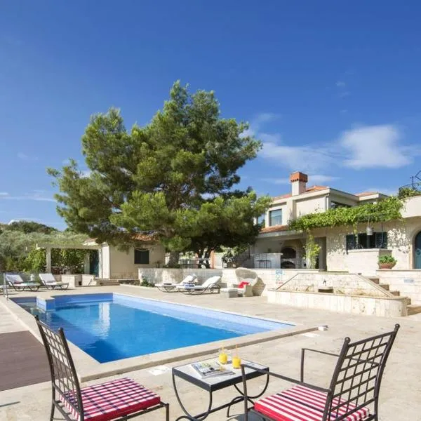 Villa Bepo位于普莱诺,配备花园和室外泳池,享有花园景。这家空调住宿距离萨罗纳考古公园有21公里,为客人提供免费WiFi,内部提供私人停车位。 这家2卧室别墅配备起居室、带卫星频道的电视、带冰箱和洗碗机的设施齐全的厨房以及2间带免费洗浴用品的浴室。2间浴室提供吹风机。 这家别墅距离青年公园体育场有25公里,距离戴克里先宫有26公里。斯普利特机场距离住宿有3公里。