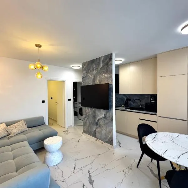 Apartmani Kristina位于科马尔纳,享有海景,配有免费WiFi和免费私人停车位,距离科马纳海滩(Beach Komarna)有3分钟步行路程。 这家公寓享有市景,为客人提供露台、休息区、卫星频道平板电视、带冰箱和洗碗机的设施齐全的厨房以及带淋浴设施和免费洗浴用品的私人浴室。部分房间提供阳台和/或花园景庭院。 Apartmani...