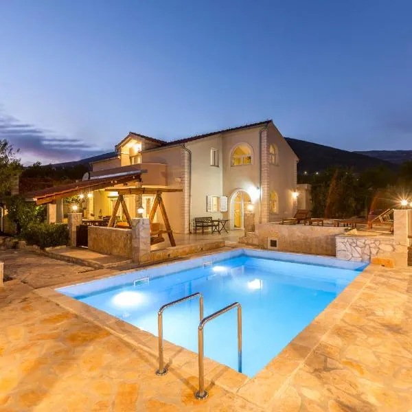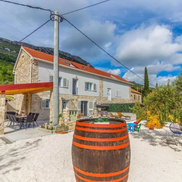 Four-Bedroom Holiday Home In Lecevica位于Lećevica,提供私人泳池。客人可以使用阳台和室外泳池。 这家空调度假屋配有4间卧室、起居室、带冰箱和咖啡机的设施齐全的厨房以及2间带淋浴设施的浴室。这家豪华型度假屋提供免费私人停车位,还配有免费WiFi。 这家度假屋距离萨罗纳考古公园有29公里,距离青年公园体育场有33公里。斯普利特机场距离住宿有19公里。