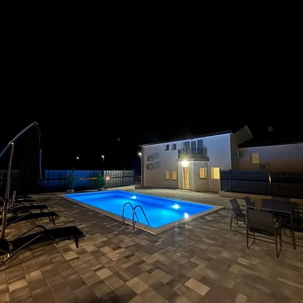 Villa Mima Pool Retreat位于Opanci,享有山景,配备客房、私人泳池和露台。这家住宿距离Blue Lake有21公里,提供季节性室外泳池和免费私人停车位。 这家空调别墅配有5间独立卧室、2间带吹风机的浴室和起居室。这家别墅还配备平板电视、洗衣机以及2间带淋浴设施的浴室。 这家别墅配备烧烤设施供客人使用。 波尔机场距离住宿有64公里。