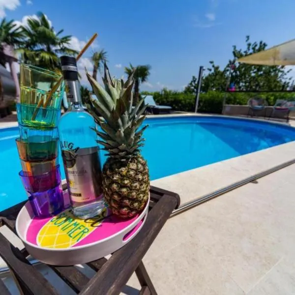 Villa Maria坐落于Lupoglav,配备私人泳池。这家空调住宿距离帕赞城堡有28公里,为客人提供免费WiFi,内部提供私人停车位。 这家度假屋提供2间卧室、带冰箱和洗碗机的厨房以及1间带淋浴设施、吹风机和洗衣机的浴室。这家度假屋也配备1间浴室。 客人可以使用这家度假屋的室外泳池。