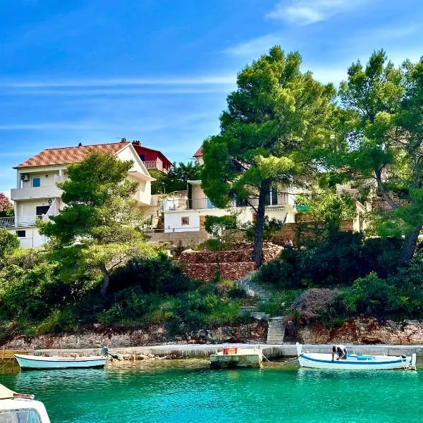 Apartments Jerko坐落于韦伯斯卡,距离马斯利尼察海滩(Maslinica Beach)有不到一公里,距离St. Stephen's Cathedral in Hvar有28公里,配备免费WiFi,享有花园景。 房间配有露台、空调、电视以及带免费洗浴用品的私人浴室。部分房间还提供带洗碗机和烤箱的厨房。
