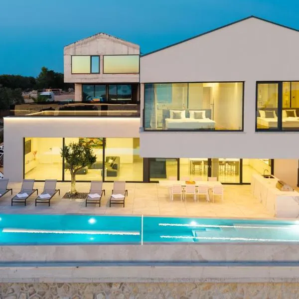 Luxury Villa Jasna 1位于Zadarska županija的比比涅,距离彭塔海灘(Punta Beach)有不到2分钟步行路程,提供免费WiFi、儿童游乐场、花园和免费私人停车位。 这家公寓享有市景,为客人提供露台、休息区、卫星频道平板电视、带冰箱和炉灶的设施齐全的厨房以及带淋浴设施和免费洗浴用品的私人浴室。部分房间配有阳台和/或海景或花园景庭院。