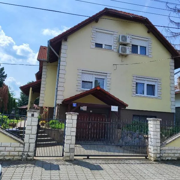 Dombi Vendégház坐落于Nyíregyháza,享有花园景,拥有免费WiFi和免费私人停车位。 设施齐全的共用浴室提供坐浴盆和吹风机。 客人还可以在共用休息室放松身心。 德布勒森机场距离住宿有62公里。