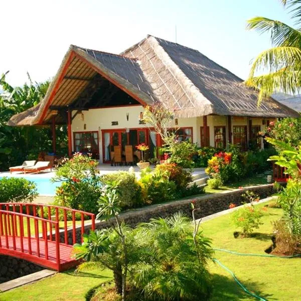 Villa Mosel Bali坐落于Banjar,享有山景,配有客房、私人泳池和露台。这家住宿距离唐古维夏海滩(Tangguwisia Beach)有3分钟步行路程,配备户外游泳池和免费私人停车位。 这家空调别墅配有2间卧室、起居室、带冰箱和电热水壶的设施齐全的厨房以及2间带淋浴设施和免费洗浴用品的浴室。这家别墅还提供平板电视以及2间带吹风机的浴室。 伍拉·赖国际机场距离住宿有95公里。