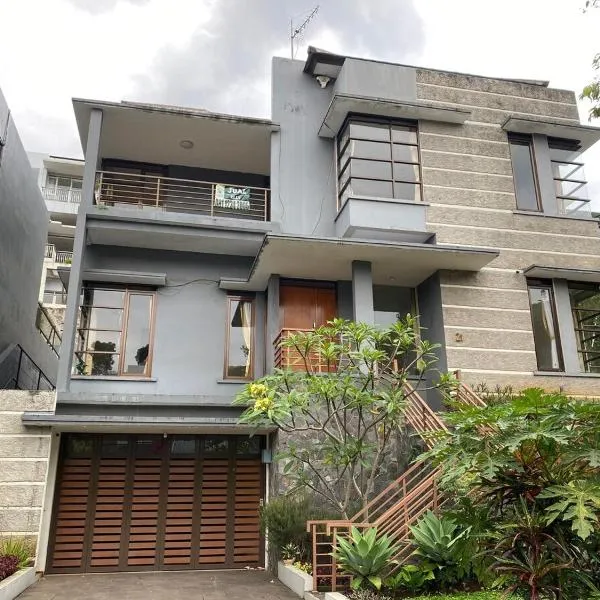 Family Only Cozy Villa on Top of Bandung - De Reiz Iris Syariah 4BR坐落于Ciburial,提供花园和露台,距离奇哈佩拉斯步行购物中心有10公里,距离省府大楼有10公里,距离布拉加城市步道有11公里。这家空调住宿距离山昂格隆乌乔音乐工作室有7公里,为客人提供免费WiFi,内部提供私人停车位。