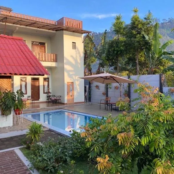 Imah Iqrima位于Cibogo,提供免费WiFi,配备游泳池、花园和酒吧,享有市景。内部提供私人停车位。 每间房间都配备露台、带迷你吧的设施齐全的厨房、带沙发床休息区、平板电视以及带坐浴盆和免费洗浴用品的私人浴室。所有房间均提供山景阳台。 这家度假屋距离覆舟火山有11公里,距离杜松班布家庭休闲公园有12公里。万隆国际机场距离住宿有15公里。