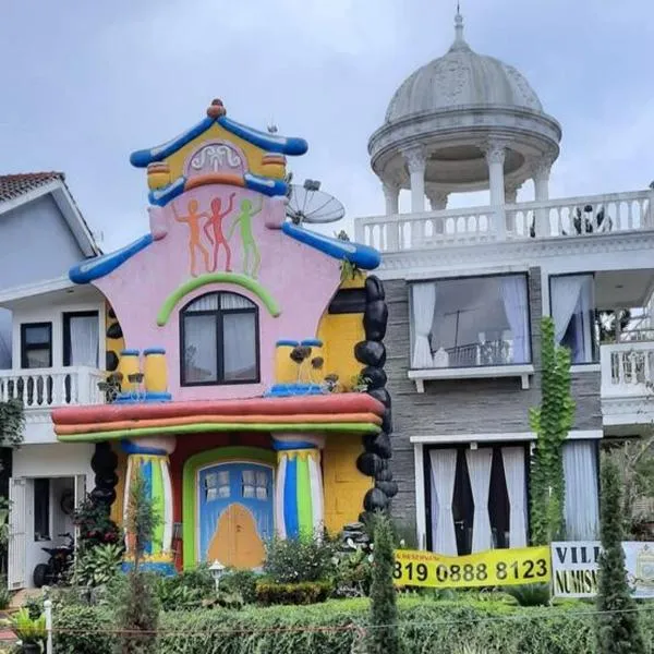 Villa Numismatik. Penginapan Unik yang Asri Alami享有山景,提供免费自行车、花园和共用休息室,距离都市丛林主题公园约有40公里。这家别墅配备免费私人停车位和共用厨房。 这家别墅配有5间卧室、带有线频道的平板电视、带冰箱和炉灶的设施齐全的厨房、洗衣机以及2间带淋浴设施的浴室。2间浴室提供免费洗浴用品。 这家别墅提供烧烤设施。住宿内部配备露台。
