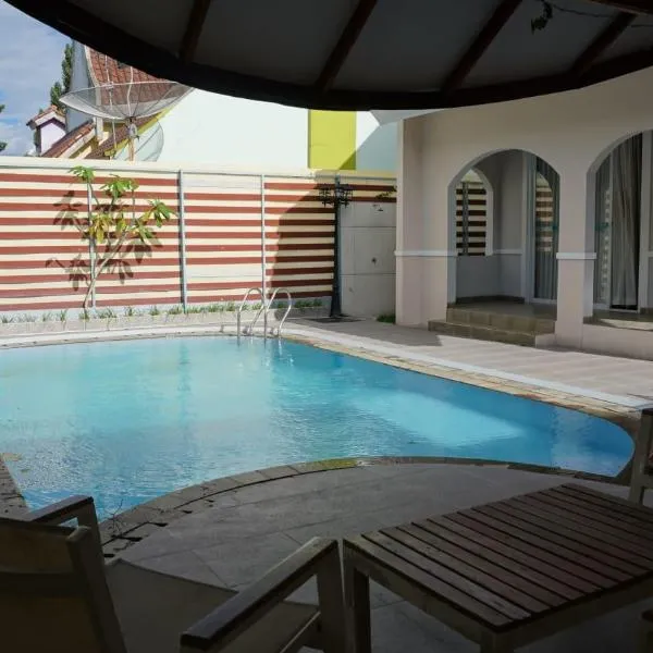 Diyar Villas Puncak M3/47位于普卡,提供带免费WiFi的池景客房,配备户外游泳池、共用休息室和露台。这家别墅配备免费私人停车位和客房服务。 这家空调别墅配有3间卧室、起居室、带冰箱和电热水壶的设施齐全的小厨房以及4间带坐浴盆和免费洗浴用品的浴室。4间浴室提供吹风机。 前台工作人员会讲阿拉伯语和印尼语,可随时为客人提供帮助。 这家别墅提供烧烤设施。
