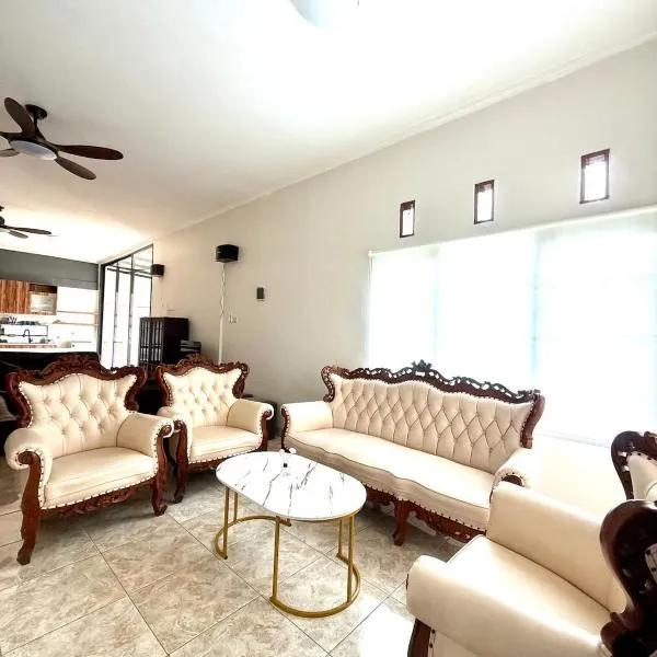 Villa Sa'adah 4提供免费WiFi和露台,距离锡箔达斯植物园有不到9.1公里,距离思埠露姆瀑布有不到11公里。这家住宿距离都市丛林主题公园有39公里,配备花园和免费私人停车位。 这家空调4卧室别墅提供4间浴室,配备浴缸。这家别墅配备花园景阳台,也配备平板电视、小厨房和4间浴室。 这家别墅距离歌德盘格兰格山有11公里,距离斯赫郎瀑布有24公里。万隆国际机场距离住宿有77公里。