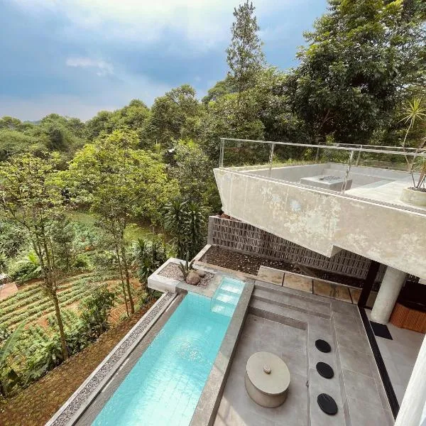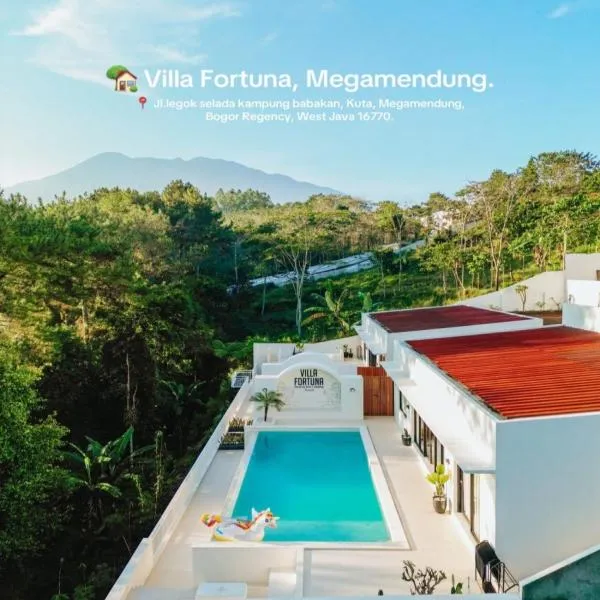 Villa Fortuna - CANGGU #Puncak Bogor坐落于Cilama,享有池景,配有客房、私人泳池和阳台。这家住宿距离都市丛林主题公园有21公里,提供户外游泳池和免费私人停车位。 这家别墅提供2间卧室、2间浴室、床上用品、毛巾、带卫星频道的平板电视、设施齐全的厨房以及山景露台。这家空调别墅还配备休息区以及2间带坐浴盆和淋浴设施的浴室。