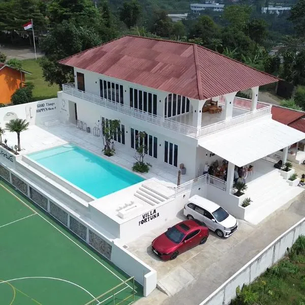 Villa Fortuna - PANDAWA #Puncak Bogor坐落于Megamendung,配有私人泳池,享有池景。这家住宿距离都市丛林主题公园有21公里,提供户外游泳池和免费私人停车位。 这家别墅提供1间卧室、1间浴室、床上用品、毛巾、带有线频道的平板电视、设施齐全的厨房以及山景露台。这家空调别墅还配备休息区以及1间带坐浴盆、淋浴设施和浴缸的浴室。