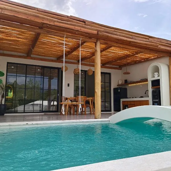 THE HILL By The Villas 100坐落于茂物,配备免费WiFi,配有游泳池、花园和酒吧,享有池景。内部提供私人停车位。 这家别墅享有山景,为客人提供露台、休息区、卫星频道平板电视、带冰箱和微波炉的设施齐全的厨房以及带坐浴盆的私人浴室。每间房间都提供花园景阳台。 THE HILL By The Villas 100配备烧烤设施供客人使用。