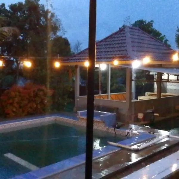 Villa DBusso Apedia, 3 BR, SP, Billiard, Karaoke配备免费WiFi和户外游泳池,距离都市丛林主题公园有不到16公里,距离斯赫郎瀑布有不到7.7公里。这家自助式别墅配有私人泳池、花园和免费私人停车位。 这家别墅提供露台,享有花园景,拥有3间卧室、起居室、平板电视、带冰箱和炉灶的设施齐全的厨房以及3间带淋浴设施的浴室。这家别墅也配备休息区和3间浴室。