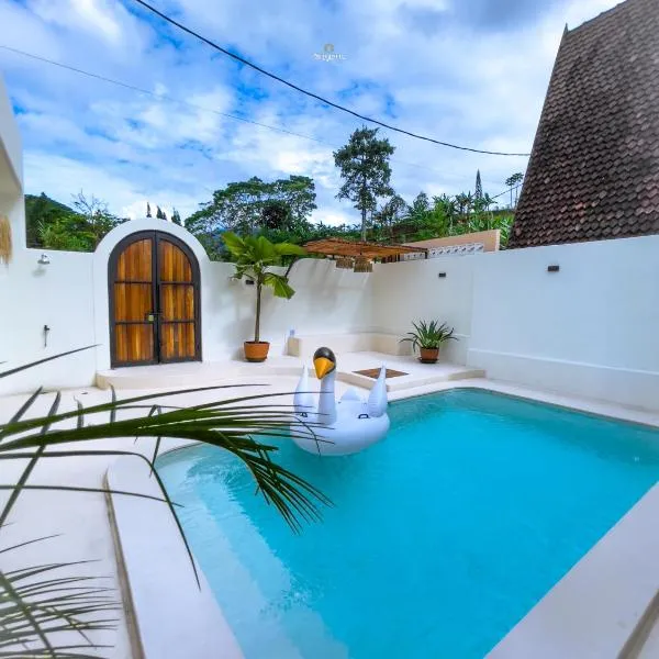 Villa Fortuna - UBUD #Puncak Bogor位于Cilama,提供户外游泳池和露台,距离都市丛林主题公园有21公里,距离锡箔达斯植物园有25公里,距离思埠露姆瀑布有30公里。这家自助式别墅配有私人泳池、花园、烧烤设施、免费WiFi和免费私人停车位。 这家空调别墅配有2间卧室、起居室、带微波炉和电热水壶的设施齐全的厨房以及2间带坐浴盆和淋浴设施的浴室。