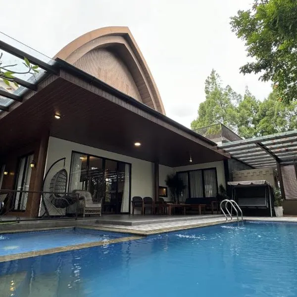 Villa Dhanty位于茂物,配备带免费WiFi的花园景客房,配有户外游泳池和露台。这家自助式别墅拥有私人泳池、花园和免费私人停车位。 这家2卧室别墅配有带平板电视的起居室、设施齐全的厨房和3间浴室。这家别墅也拥有3间浴室。 这家别墅距离都市丛林主题公园有26公里,距离印度尼西亚大学有49公里。哈利姆·珀达纳库苏马机场距离住宿有53公里。