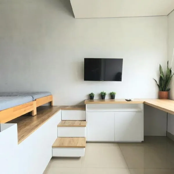 Womy Homy坐落于茂物,距离印尼微缩公园仅有42公里,提供花园、共用休息室和共用厨房。这家度假屋提供免费私人停车位和24小时前台。 这家度假屋享有市景,配备露台,配有2间卧室、起居室、有线频道平板电视、设施齐全的厨房以及1间带坐浴盆和淋浴设施的浴室。这家空调度假屋还配备休息区、洗衣机以及1间带浴缸的浴室。 这家度假屋提供烧烤设施。住宿内部提供水上公园。