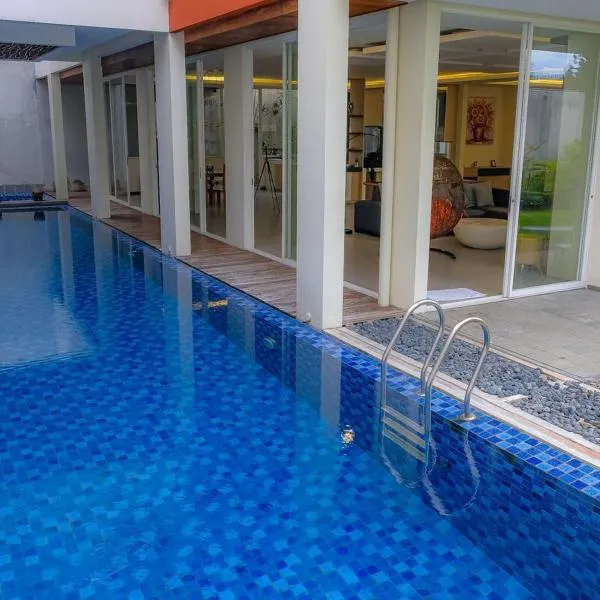 Platinum Setrasari Guest House 5BR Private Pool Bandung坐落于万隆,距离奇哈佩拉斯步行购物中心仅有4.5公里,提供户外游泳池、共用休息室和共用厨房。这家自助式别墅配有私人泳池、花园、烧烤设施、免费WiFi和免费私人停车位。 这家别墅提供露台,享有市景,拥有5间卧室、起居室、平板电视、带冰箱和烤箱的设施齐全的厨房以及5间带淋浴设施的浴室。