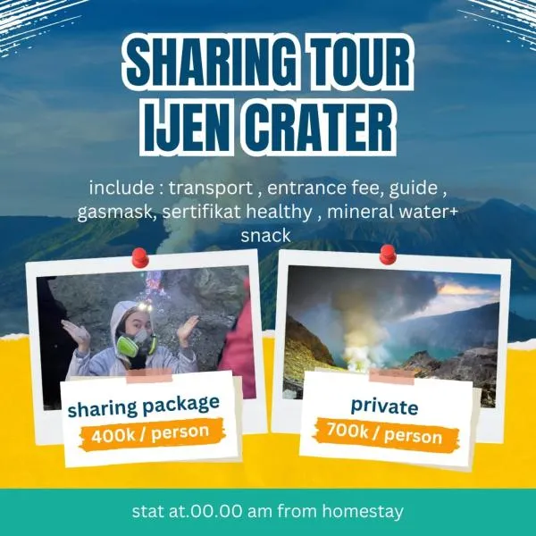Green ijen homestay and tour坐落于外南梦,配备免费WiFi。客人可以使用花园、共用休息室和露台。 房间提供设施齐全的厨房,内设用餐区、冰箱、电热水壶和炉灶。部分房间拥有阳台和/或花园景庭院。 这家家庭式住宿的客人可以享用亚洲风味早餐。 住宿提供免费私人停车位、商务中心和24小时前台。