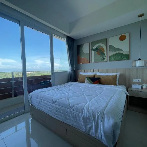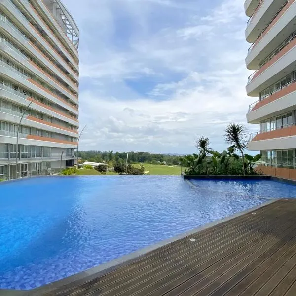 Apartment Nuvasa Bay Nongsa, Kalani 1BR 8th, Sea & Golf View, Batam位于秾莎,配备带免费WiFi的海景客房,配有户外游泳池、花园和私家海滩。这家住宿距离农萨海滩(Nongsa Beach)有8分钟步行路程,提供酒吧和免费私人停车位。...