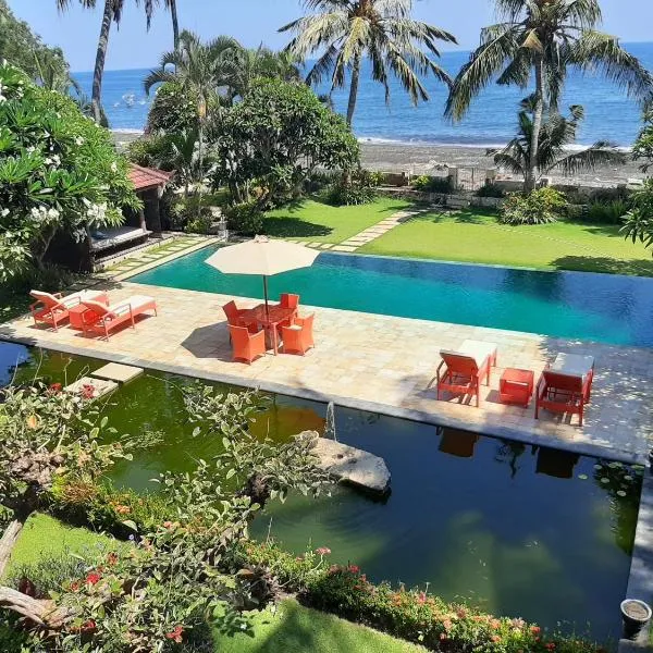 The Beach Front Villas - North Bali位于Kubutambahan,配备带免费WiFi的海景客房,配有花园、共用休息室和露台。这家别墅提供免费私人停车位和客房服务。 这家空调别墅配有4间卧室、起居室、带冰箱和咖啡机的设施齐全的厨房以及4间带淋浴设施和热水浴池的浴室。4间浴室配有浴缸,也配备免费洗浴用品,提供毛巾和床上用品。