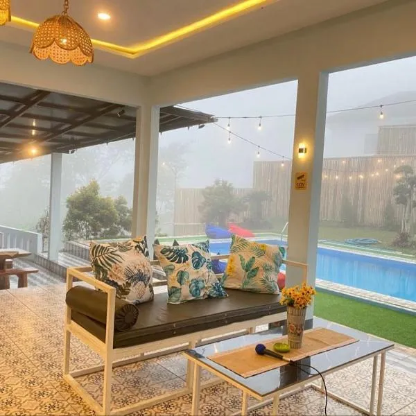 Villa meilody 1 - jek space地理位置超棒,位于Paragajen的Cisarua,配备室外泳池和24小时前台,距离都市丛林主题公园有21公里,距离锡箔达斯植物园有24公里。这家自助式别墅拥有私人泳池、花园、烧烤设施、免费WiFi和免费私人停车位。 这家别墅提供露台,享有山景,配有4间卧室、起居室、平板电视、带冰箱和烤箱的设施齐全的厨房以及4间带淋浴设施的浴室。