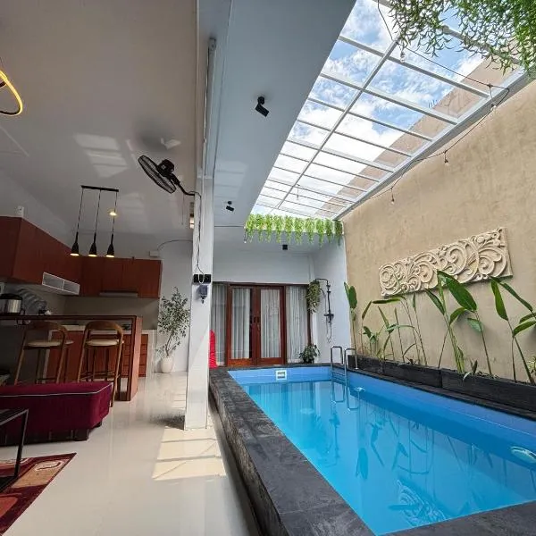 Villa Bambu坐落于沙努尔,配有客房和私人泳池。这家空调住宿距离佩格姆巴克海滩(Pengembak Beach)有2.5公里,为客人提供免费WiFi,内部提供私人停车位。 这家别墅提供2间卧室、带冰箱和微波炉的小厨房以及2间带淋浴设施和免费洗浴用品的浴室。这家别墅还配备平板电视以及2间带吹风机的浴室。 除了室外泳池,这家别墅还提供露台。