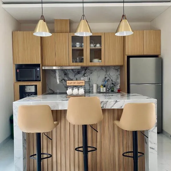 Senyum Bali Inn 1BR Sanur位于沙努尔,提供免费WiFi。客人可以使用户外游泳池、花园和共用休息室。内部提供私人停车位。 每间房间都配备露台、带冰箱的设施齐全的厨房、休息区、平板电视以及带淋浴设施和免费洗浴用品的私人浴室。部分房间提供用餐区和/或庭院。 这家公寓距离佩格姆巴克海滩(Pengembak Beach)有1.8公里,距离乌达亚那大学有6.1公里。
