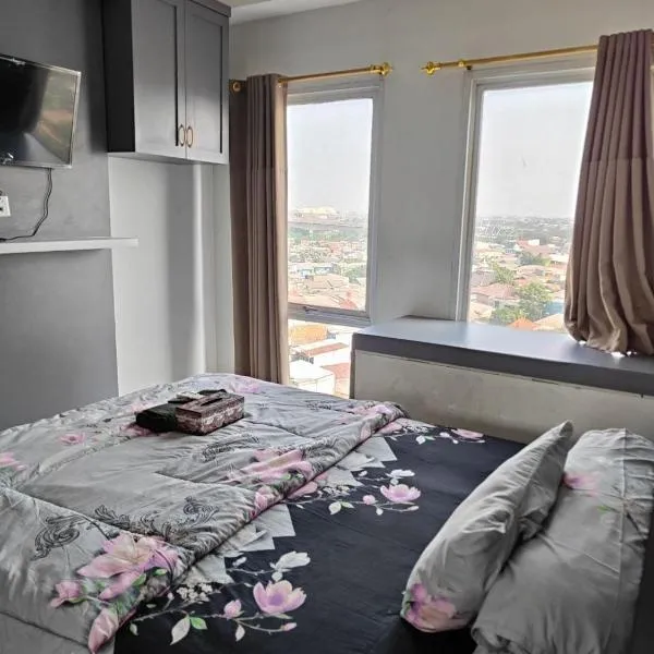 A high rise stay in Bekasi!位于Pulosirih,距离印尼微缩公园仅有14公里,提供花园、露台和ATM取款机。这家空调住宿距离大银河公园有4.8公里,为客人提供免费WiFi,内部提供私人停车位。 这家公寓配有1间卧室、带平板电视的起居室、设施齐全的厨房以及1间带浴缸或淋浴设施和免费洗浴用品的浴室。这家公寓也为客人提供1间浴室。