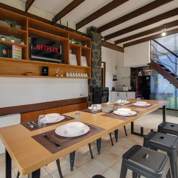 Villa wanacosta位于Taringgultonggok,距离覆舟火山有37公里,配备花园、免费WiFi、共用厨房和共用休息室。入住这家别墅的客人可以使用阳台。 这家别墅享有花园景,配有3间卧室以及3间带免费洗浴用品的浴室。这家空调别墅还提供平板电视、带冰箱的设施齐全的厨房、休息区、洗衣机以及3间带淋浴设施、热水浴池和浴缸的浴室。 这家别墅配备露台供客人使用。