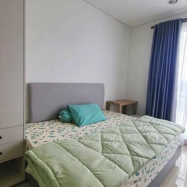2BR Serviced Apartment at Vanya Park Asatti Garden BSD City位于当格浪,提供免费WiFi、空调、户外游泳池和花园,距离印尼会展中心有5.1公里,距离庞多克印达购物中心有26公里。内部提供私人停车位。 这家公寓享有池景,提供露台,配有2间卧室、起居室、卫星频道平板电视、设施齐全的厨房以及1间带坐浴盆和淋浴设施的浴室。