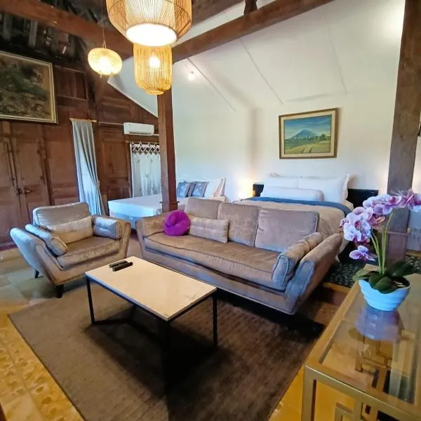 Villa Joglo Paris Yogyakarta提供花园、露台以及带阳台和免费WiFi的空调住宿,距离帕朗特里斯海滩(Parangtritis Beach)有12分钟步行路程。内部提供私人停车位。 设施齐全的私人浴室提供坐浴盆和免费洗浴用品。 这家别墅距离苏丹皇宫有28公里,距离爪哇民族考古博物馆有29公里。阿迪苏特吉普托机场(Adisutjipto)距离住宿有35公里。