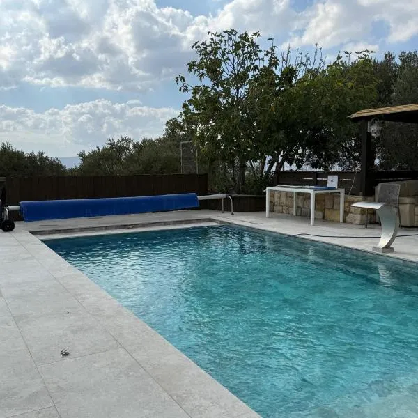 וילהשחרבגולן享有花园景,配备露台和阳台,距离巴尼亚斯瀑布约有12公里。这家自助式公寓配有私人泳池、花园、烧烤设施、免费WiFi和免费私人停车位。 这家空调公寓配有4间卧室、起居室、带冰箱和电热水壶的设施齐全的厨房以及1间带淋浴设施和吹风机的浴室。这家公寓还提供平板电视、休息区以及1间带浴缸的浴室。 客人可以使用这家公寓的室内泳池。