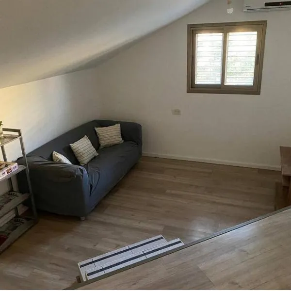 צימרמולפרדס位于South District Israel的Zimrat,配有阳台。这家公寓坐落于一栋建造于2022年的建筑内,距离Ben Gurion University有39公里。 这家空调公寓配有1间独立卧室、设施齐全的小厨房以及1间浴室。这家公寓也提供1间浴室。 本·古里安国际机场距离住宿有91公里。