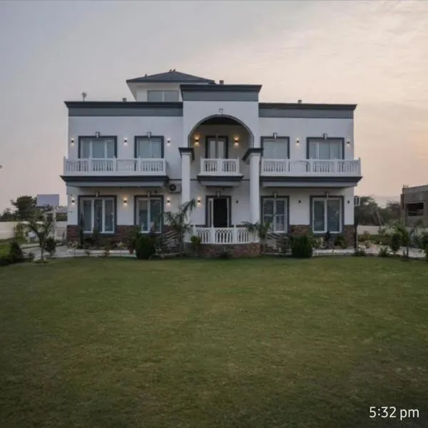 Raj Farms Luxury Villa and Private Pool Near Kukus坐落于斋浦尔,配有花园和全年开放的室外泳池,享有池景。这家住宿的客人可以使用阳台、桌球台、免费私人停车位和免费WiFi。 这家别墅提供露台,享有山景,拥有3间卧室、起居室、平板电视、带冰箱和炉灶的设施齐全的厨房以及3间带淋浴设施的浴室。3间浴室配有浴缸,也配备免费洗浴用品,提供毛巾和床上用品。...