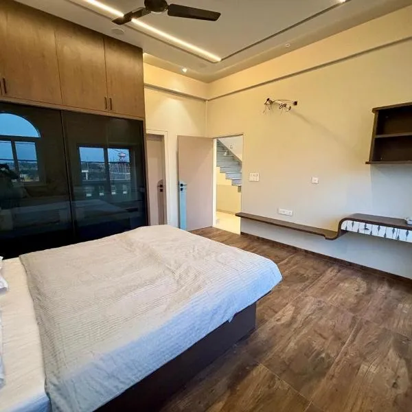 Home Stay with Giriraj View I On Parikrama Marg I 5 mins to ISKCON & Daan Ghati位于Govardhan,提供露台,享有山景,距离马图拉火车站有25公里,距离洛加尔堡垒有34公里。这家住宿距离珀勒德布尔火车站有33公里,提供花园和免费私人停车位。 这家空调公寓配有2间独立卧室、起居室、带冰箱的设施齐全的厨房以及2间浴室。