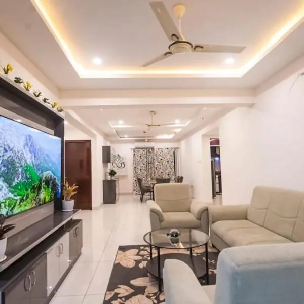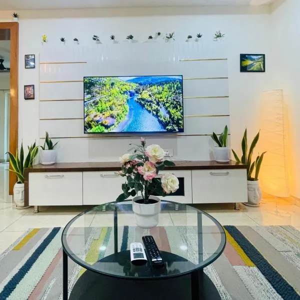 Jhanu's Home 1享有花园景,提供露台和阳台,距离印度商学院(ISB)约有9.4公里。这家空调住宿距离戈尔康达堡有4.7公里,为客人提供免费WiFi,内部提供私人停车位。 这家公寓配有平板电视。这家住宿配有厨房。 这家公寓距离市中心购物中心有12公里,距离Ravindra Bharathi有13公里。拉吉夫·甘地国际机场距离住宿有27公里。