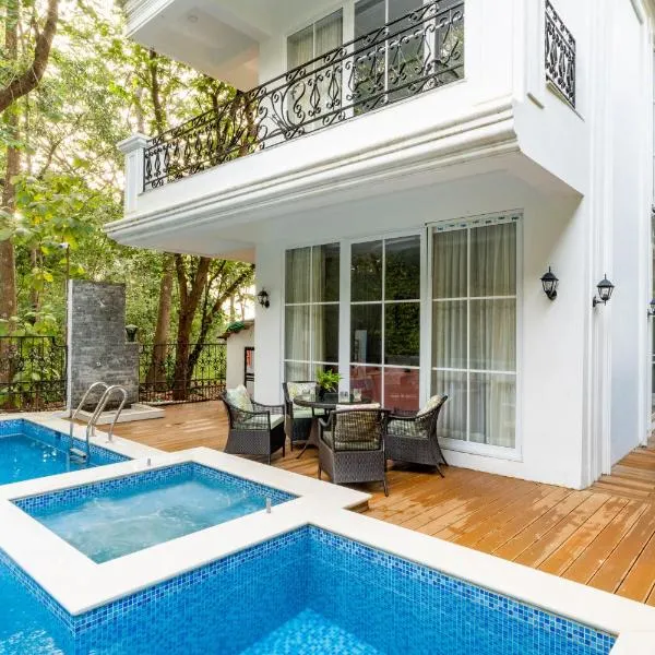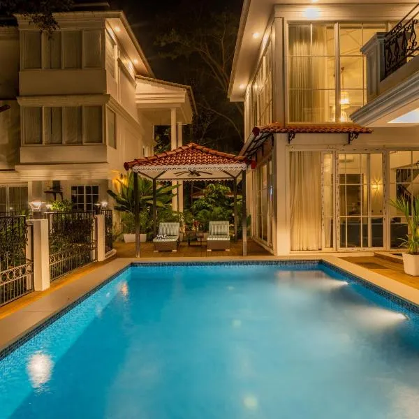 ELIVAAS 4 plus 1 BHK with Pvt pool - Amado Villa Shai坐落于Goa,享有池景,配有客房、私人泳池和庭院。这家住宿距离恰波拉堡有4.8公里,提供户外游泳池和免费私人停车位。 这家别墅提供阳台,享有市景,拥有4间卧室、起居室、平板电视、带冰箱和微波炉的设施齐全的厨房以及4间带淋浴设施的浴室。