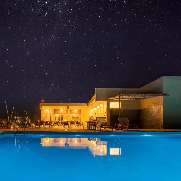 Jawai Nature Stay Jawai位于Bīsalpur,享有池景,提供餐厅、共用厨房、小吃吧、花园、全年开放的室外泳池和露台。住宿提供的免费WiFi,内部提供私人停车位。 设施齐全的私人浴室提供淋浴设施和免费洗浴用品。 住宿供应早餐,提供美式、亚洲风味和素食三种选择。 住宿内部配备儿童游乐场。客人可以在这家农家乐附近体验骑行。 焦特布尔机场距离住宿有141公里。