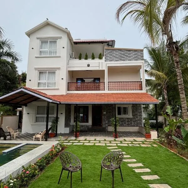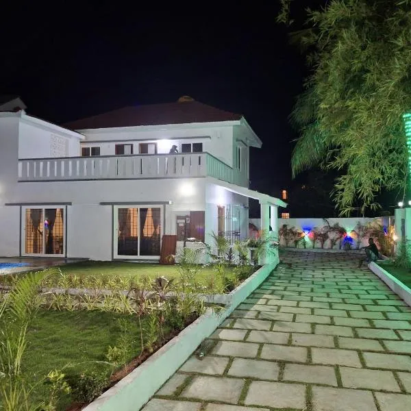 Private 3BHK Villa with Indoor Pool享有花园景,配备露台和阳台,距离瓦达内米利海滩(Vada Nemili Beach)约有2.9公里。这家自助式别墅拥有私人泳池、花园和免费私人停车位。 这家空调别墅配有2间独立卧室、起居室、设施齐全的厨房以及3间浴室。这家别墅也配有3间浴室。 这家别墅提供室内泳池。