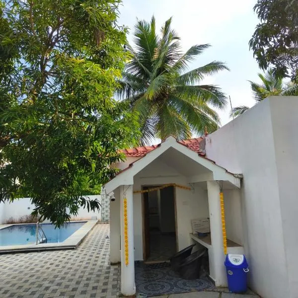 ECR Beach Villa位于Tirupporūr,提供带免费WiFi的花园景客房,配备户外游泳池和露台。这家自助式别墅配有私人泳池、花园和免费私人停车位。 这家空调别墅配有4间独立卧室、起居室、设施齐全的厨房以及5间浴室。这家别墅也为客人提供5间浴室。 这家别墅提供汽车租赁服务。 ECR Beach Villa距离阿林格纳安娜动物园有33公里,距离印度安那大学有39公里。