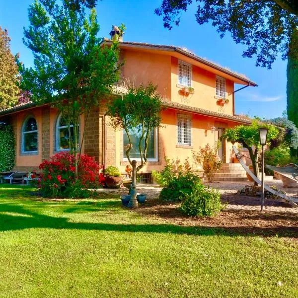 agriturismo villa amerina位于Corchiano,提供免费WiFi。客人可以使用花园、露台和酒吧。内部提供私人停车位。 每间房间都配有私人浴室和坐浴盆、空调、平板电视以及冰箱。 这家农家乐距离瓦莱伦加有30公里,距离兰特别墅有22公里。罗马菲乌米奇诺机场距离住宿有79公里。