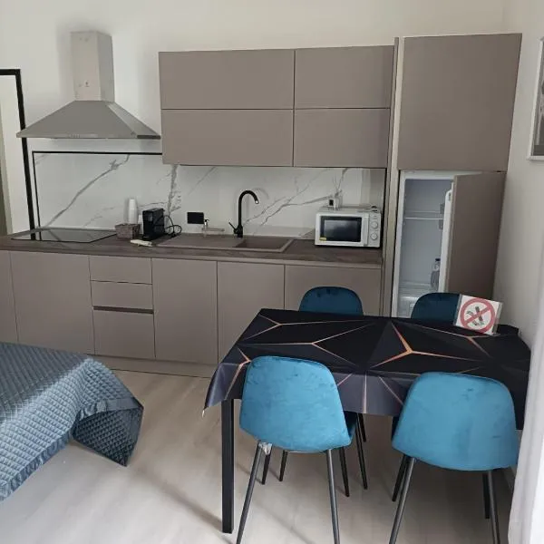 Stiloso bilocale terraceparking坐落于迪亚诺马里纳,距离巴尼德尔菲诺海滩有8分钟步行路程,距离Bresca Square有45公里,提供阳台和免费WiFi。这家公寓距离San Siro Co-Cathedral有45公里,距离Forte di Santa Tecla有45公里。 这家空调公寓配有1间独立卧室、起居室、带洗碗机和炉灶的设施齐全的厨房以及1间浴室。