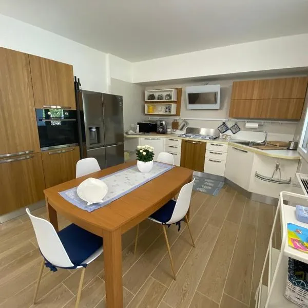 Al Mare Home享有花园景,提供阳台,距离卡拉滨海海滩约有5分钟步行路程。这家自助式别墅配有花园、烧烤设施、免费WiFi和免费私人停车位。 这家别墅提供露台,享有海景,拥有4间卧室、起居室、平板电视、带冰箱和烤箱的设施齐全的厨房以及2间带坐浴盆的浴室。这家空调别墅还配备休息区、洗衣机以及2间带淋浴设施和热水浴池的浴室。 这家别墅为客人提供水上公园。