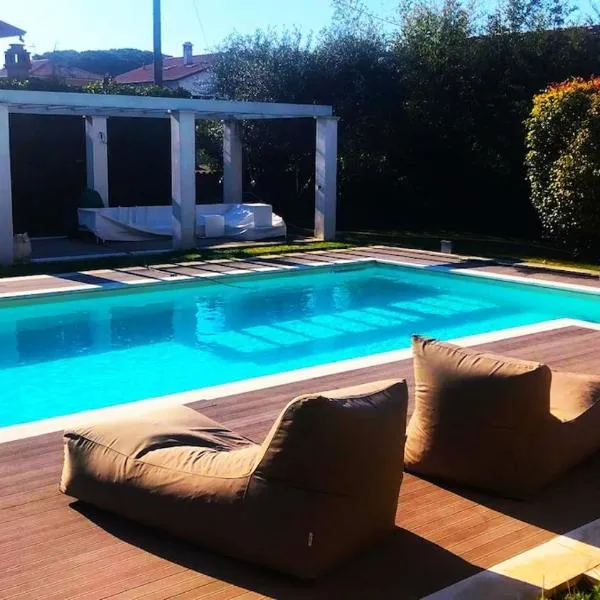 Casa Chiara享有花园景,配备露台和阳台,距离卡拉拉展览中心约有3.9公里。这家度假屋距离Castello San Giorgio有不到30公里,距离Technical Naval Museum有不到30公里,提供免费WiFi。 这家度假屋配有1间卧室、起居室、带冰箱和咖啡机的设施齐全的厨房以及1间带坐浴盆和淋浴设施的浴室。这家度假屋还提供休息区、洗衣机以及1间带吹风机的浴室。