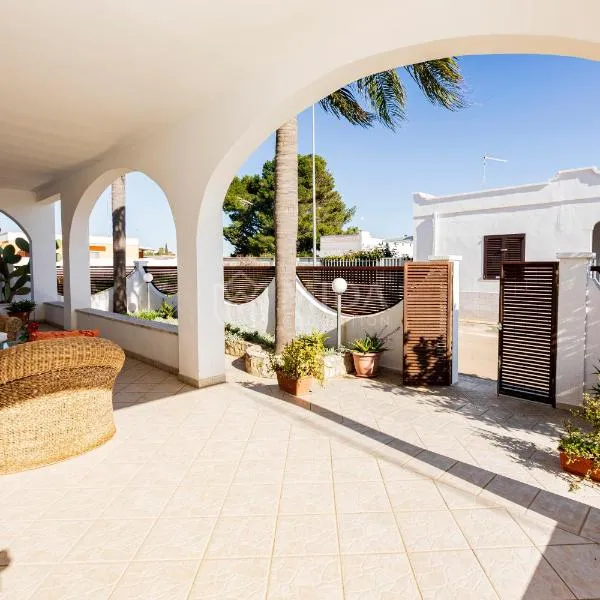 Golden Bay Lux House坐落于普利亚大区的托雷拉皮罗,拥有阳台。这家度假屋配备免费私人停车位、共用厨房和免费WiFi。 这家空调度假屋配有4间独立卧室、起居室、带烤箱的设施齐全的厨房以及1间浴室。这家度假屋还提供电视以及1间带吹风机的浴室。 这家度假屋距离托里拉皮落海滩(Torre Lapillo Beach)有3分钟步行路程,距离圣奥伦佐广场有33公里。