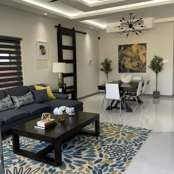 Modern, Spacious, 3BR Hill View Retreat, Central, Gated位于欧丘里欧,配备带免费WiFi的花园景客房,配有户外游泳池、花园和露台。内部提供私人停车位。 这家度假屋提供阳台,享有山景,拥有3间卧室、起居室、平板电视、带冰箱和洗碗机的设施齐全的厨房以及4间带浴缸或淋浴设施的浴室。这家度假屋也配有休息区和4间浴室。...