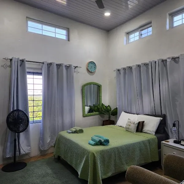 Swabys Hope Hideaway位于曼德维尔,提供免费WiFi。客人可以使用花园、露台和酒吧。内部提供私人停车位。 部分房间提供有线频道平板电视、带冰箱的设施齐全的小厨房,以及带淋浴设施和免费洗浴用品的私人浴室。 这家住宿加早餐旅馆提供汽车租赁服务。客人可以在附近体验徒步。 Swabys Hope Hideaway距离YS瀑布有46公里。